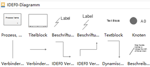 IDEF0 Diagramm enthält in der Regel die folgenden Komponenten: