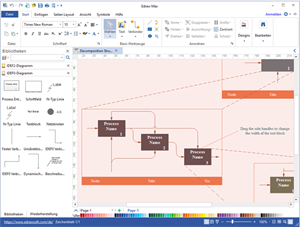IDEF0 ist eine Methode, um System- oder Unternehmens-Entscheidungen und -Handlungen zu modellieren und geht zurück auf die Structured Analysis und Design Technik. Mit Edraw können Sie auch andere Flussdiagramm Vorlagen erstellen z.B. BPMN-Flussdiagramm, Datenflussdiagramm, Standardflussdiagramm, Highlight-Flussdiagramm, Arbeitsablaufdiagramm, Funktionsübergreifendes Flussdiagramm, SDL-Diagramm.
