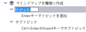 「アウトライン」表示では、テキストのアウトライン形式を使用してマインドマップマップを表示できます。トピックは上から下にリニアにリストされているので、簡単にトピックを読み込んでナビゲートできます。