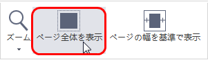 - 「表示」タブの「ページ全体を表示」ボタンをクリックします。