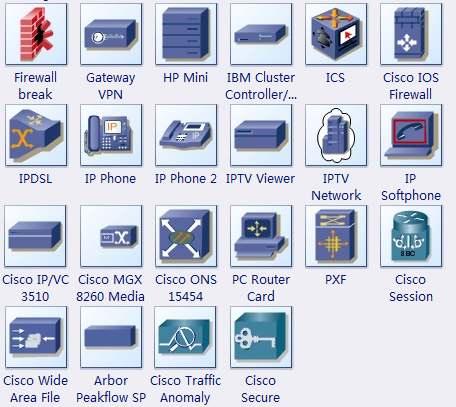 Here are special and highly detailed symbols, accurate shapes and computer graphics for firewall break, gateway VPN, HP Mini, IBM Cluster controller, Cisco IOS Firewall, IP Phone, Cisco ONS etc.