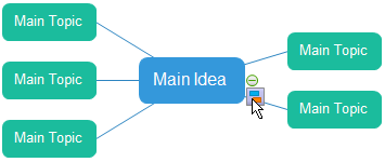 从思维导图符号库中拖拽主题形状。在形状下方有一个方形操作按钮,点击一次添加一个形状。每一个形状都有浮动按钮,让你可以轻松的添加下一层次的形状。新添加的形状自动连接和排版,自动对齐和调整间距,保证高效高质绘图。