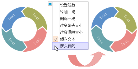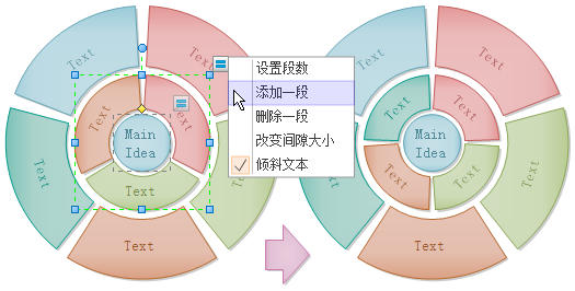 亿图提供风格各异的圆形图模板,省去了绘画这个步骤。此外,图形是智能化的,可以通过浮动按钮进行快速编辑。你可以挑选箭头风格,堆叠圆形,饼状或者环状的圆形图模板,如下图所示。