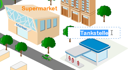 (Hinweis: a. Sie können die Pfeil-Taste drücken, um eine Form in Position zu verschieben. b. Nach Erstellung eines langen Weges können Sie das Gruppieren Tool nutzen, um mehrere Straßen-Formen als eine Einheit zu gruppieren, können Sie dann es als eine Form verwenden.)
