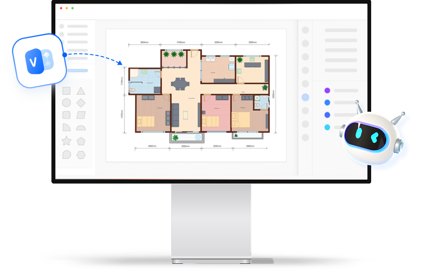 Edraw Max bietet nicht nur die Funktionen von Visio®, sondern auch einige Funktionen, die Visio® nicht bietet. Beispielsweise vereinfachen die schwebenden Schaltflächen die Diagrammerstellung, und mit den Vektorskizzenwerkzeugen können Benutzer schnell und einfach neue Symbole entwerfen.