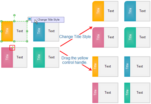 Entsprechend den spezifischen Bedürfnissen zum Zeichnen von Business-Matrix, sind Edraw Matrix Shapes mit speziellen Funktionen entworfen. Sie können die schwebende Schaltfläche verwenden, um den Titel oder den Stil der Form zu ändern und den Abstand zwischen den Unterformen zu ändern und so weiter.