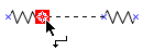 Wenn der Verbinder auf die Formen geklebt wird, werden die Endpunkte rot.