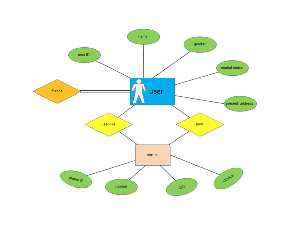 Wir können einige Beziehungen zwischen der Entität und ihren Attributen beobachten, z.B. die Entität "mobile app" und ihr Attribut domain name. Dies zeigt, dass der Projektleiter das Projekt auf der Grundlage von Software erstellen wird. Außerdem können wir auch andere Beziehungen zwischen Kunden und Admin, Produkten und Admin, etc. finden.