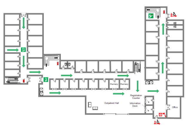 Um einen wirksamen angemessenen Flucht- und Rettungsplan zu erstellen, einerseits sollte das Programm den Benutzern alle Sorten von gebrauchten standard-Symbolen liefern wie die grüne Peile, Notausgänge, Alarm, Hydranten, Warnung usw. Andererseits sollte der Notfallplan die Menschen einfach und schnell darüber beherschen lassen, wofür stehen die Zeichnen und wo befindet sich die Alarm, Feuerlöschen oder andere.