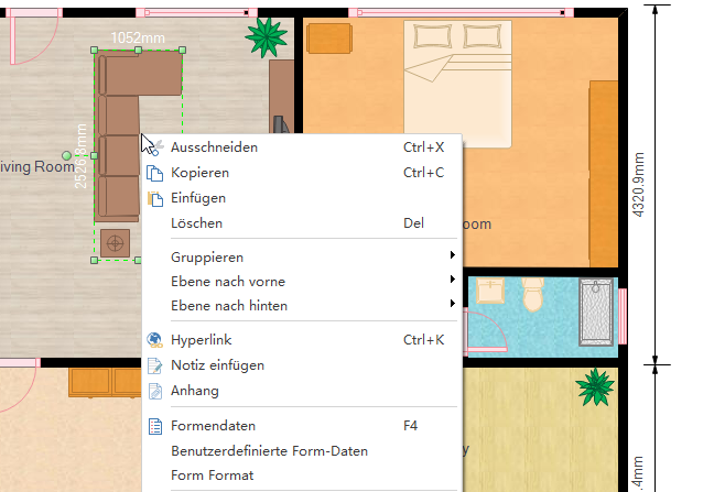 Andere schnelle Möglichkeit zur Bearbeitung der Grundriss-Shapes Farben ist Rechtsklick, dann können Sie auch von dem kleineren Schaufenster die Füllen finden, versuchen Sie bitte mal.