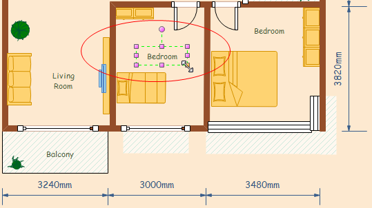 - Ziehen Sie die grünen quadratischen Griffe, um die Größe anzupassen, oder doppelklicken auf Bemaßungstextfeld zum Eingeben der Wert für die Länge oder Breite.