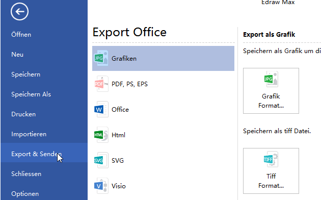 2) Klicken Sie Export & Senden unter Datei, um das Flussdiagramm als Web-Dokumente, Grafiken und MS-Dateien und so weiter zu exportieren.