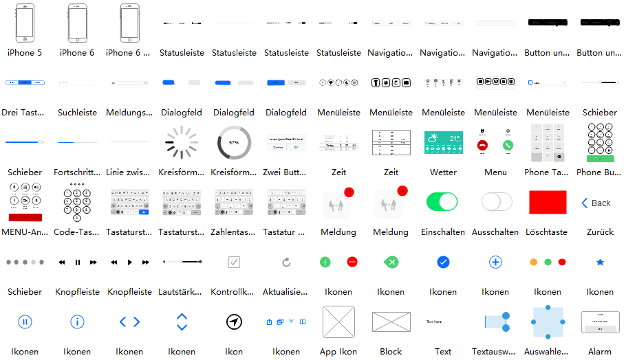 Hier bieten wir viele Symbole für iPhone Wireframe Design. Sie können die Icons für iPhone oder iPad, für iOS 8, iOS 7 und iOS 6 leicht finden und direkt nutzen.