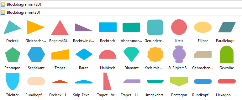 Die Software enthält einige vordefinierte geometrischen Formen. Alle Symbole können bearbeitet und neu angeordnet werden. Verwenden Sie die Vorlagen, um pädagogische Math. Illustrationen mit den Formen der 2D und 3D Figuren, der trigonometrischen Funktionen und griechischen Buchstaben zu erstellen.