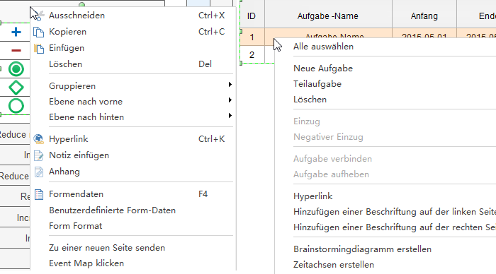 Eine andere Weise lässt schnelle Projektplan sich mit Rechtsklick zu bearbeiten. Wählen Sie eine Zeile im Gantt-Diagramm, und fügen Sie neue Aufgabe und Teilaufgabe über das Rechtsklick-Menü.