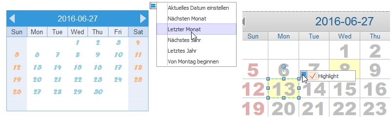 Sehen Sie, wie Sie Kalender schnell bearbeiten können. Die fließenden Tasten helfen Ihnen zwischen verschiedenen Jahren und Monaten zu navigieren. Durch die Hervorhebung einer Zelle, können Sie wichtige Tage markieren.