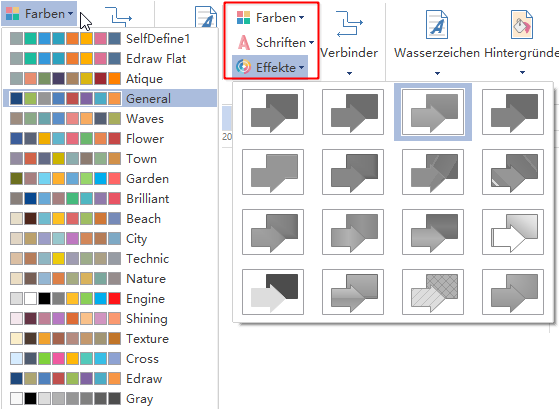 Um der Themen der Projektpläne zu ändern, können Sie die Füllung, Linie und Text insgesamt mit 1 Klick ändern. Wechseln Sie zum Seite Layout Tab, und wählen ein Thema.