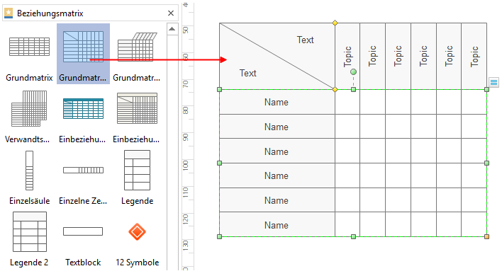 Um eine leere Beziehungsmatrix zu erstellen, kann die Designer die grundlegende Verwandtschaftsmatrix-Vorlage in die Leinwand ziehen.