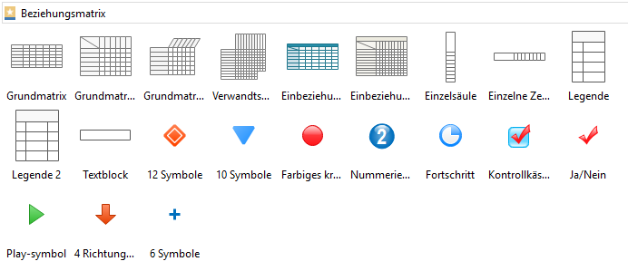 Auf der linken Seite des Zeichenblattes werden Sie alle Formen und Symbole für Beziehungsmatrix in der Bibliothek finden.