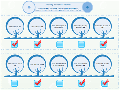 Es gibt viele andere Arten von Visualisierungstools zur Selbstverbesserung. Setzen Sie sie einfach flexibel ein, um Ihr Inneres zu erkunden. Verbessern Sie sich auf der Grundlage Ihres Strebens nach Selbstverwirklichung. In der folgenden Tabelle finden Sie Beispiele für Grafik Organizer zur Selbstverbesserung, die von Edraw erstellt wurden.