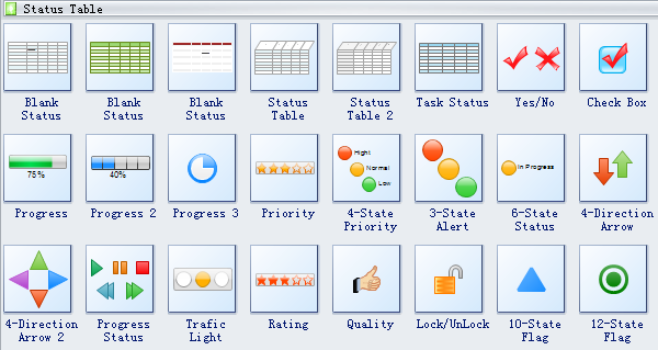 Öffnen Sie die Vorlage der Statustabelle in der Gruppe Projektmanagement im Datei Menü, um diese Formen anzuwenden.