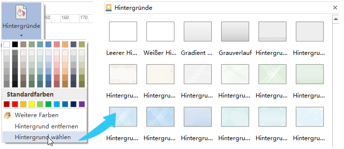- Klicken Hintergrund wählen für einen vordefinierten Hintergrund.
