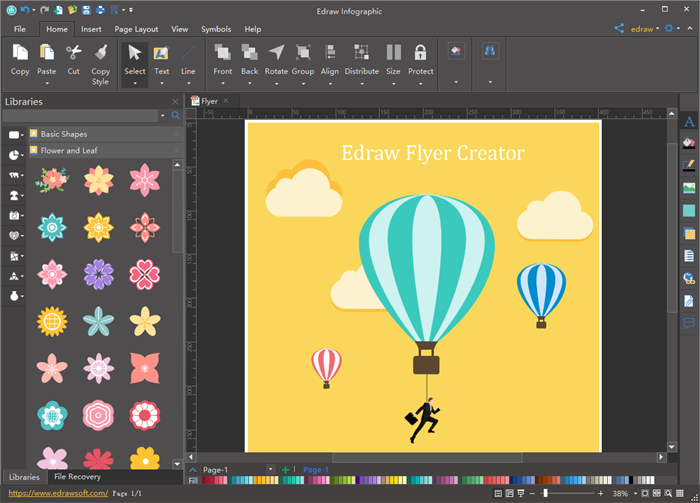 EdrawMax has provided plenty of libraries for you with abundant icons, synbols, shapes and fonts. Besides, the pre-made templates and examples are editable vector files. If you like the template, filling in the texts would be what you need to do. Otherwise, keep the templates for easy reference and customize a flyer that meets your demand. With the help of Edraw Infograohic software, you are the flyer master!