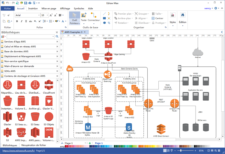 Accumuler des années d'expérience pour le développement de logiciel de diagramme, Edraw distingue parmi ses concurrents par un bon nombre de fonctionnalités puissantes. Il donne une grande commodité pour dessiner un diagramme de l'architecture AWS. Voici quelques caractéristiques principales:
