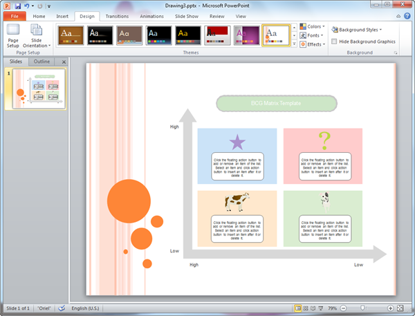 Edraw est un logiciel pour la création de matrice BCG facile à utiliser livré avec des modèles de matrice bcg pré-dessinés qui rendent facile pour tout le monde de créer une matrice BCG belle et professionnelle pour MS PowerPoint. Nos modèles de matrice BCG sont gratuits et faciles à réutiliser.