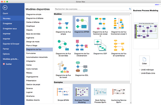 Il existe des exemples utiles dans ce logiciel de création de diagramme bpmn. Ils peuvent vous aider à vous inspirer et commencer rapidement pour créer des diagrammes BPMN.
