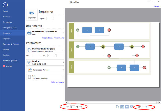 - Cliquez sur l'onglet Fichier et puis choisissez Imprimer. Un aperçu de votre document montre automatiquement.
