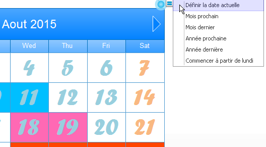 Vous pouvez sélectionner un jour dans le calendrier, puis cliquez sur le bouton d'action pour le mettre en surbrillance.