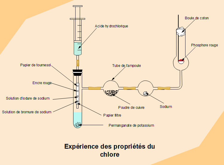 Exemples de schéma d'expérience de chimie avec la verrerie de laboratoire de chimie