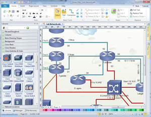 Utiliser les symboles Cisco intégrés dans Edraw Max, vous pouvez créer et présenter vos diagrammes de réseau Cisco en quelques minutes. Il est idéal pour les ingénieurs de réseaux et les concepteurs de réseaux qui ont besoin de diagramme de réseau Cisco. Une interface intuitive permet de dessiner rapidement de précises diagrammes de réseau Cisco. Il suffit de faire glisser et déposer des formes pré-dessinées représentant les ordinateurs et les périphériques réseau. Double cliquez pour définir les données de l'équipement. Une fois que vous avez terminé, il peut être imprimé ou exporté vers les programmes Microsoft Office et PDF.