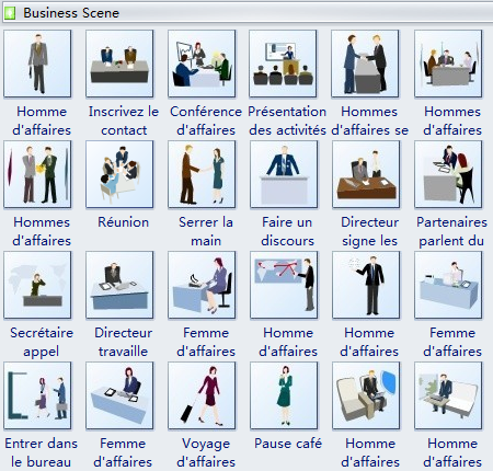 Logiciel de clipart avec de riches dessins vectoriels, y compris des cliparts de scène d'affaires!