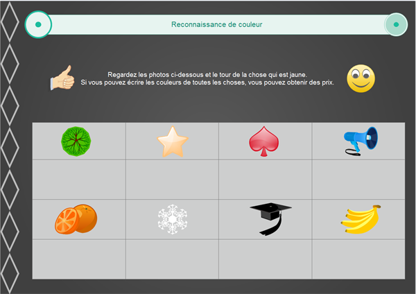 Elles peuvent être insérées à d'autres diagrammes pour rendre ll'infographie plus vivante. Par exemple, deux cliparts de fruits combiné avec d'autres formes peut former une belle et drôle feuille de calcul. La figure ci-dessous est un exemple pré-dessiné par Edraw.
