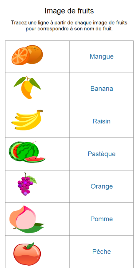 Un autre exemple est de feuille de calcul des fruits.