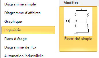 Les modèles de schéma électrique vous aident à dessiner rapidement votre schéma électrique avec des symboles intégrés de shémas électriques. Cliquez sur le modèle dans la catégorie Ingénierie dans la page de démarrage et double cliquez sur cette icône, une page de dessin vierge ouvrira. Avec de nombreuses formes pré-dessinées du schéma électrique telles que les commutateurs, les circuits, les semi-conducteurs, les relais, les chemins et les tubes de transmission, la réalisation du schéma électrique devient très facile.