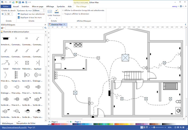 Les symboles de dessin électricité est facilement disponible pour n'importe quelle conception de câblage électrique domestique. Les bibliothèques de symboles intégrées incluent les symboles les plus courants pour réaliser un plan de câblage électrique domestique, tels que des éclairages, des interrupteurs, des prises et certains appareils spéciaux tels que le ventilateur de plafond, la sonnette de porte, le détecteur de fumée, le moniteur et l'alarme. Autre que cela, de la bibliothèque de mur, de coquille et de structure, vous avez tous les symboles nécessaires pour un plan d'étage de base. Utilisez ces symboles pour votre plan électrique maison.