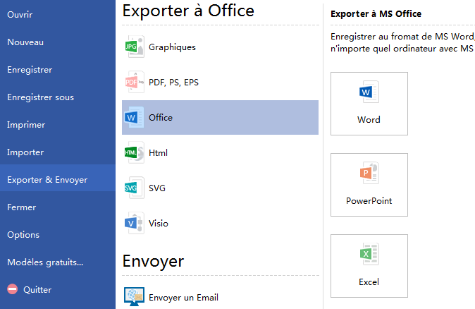 Il est facile d'exporter le dessin au format SVG. Cliquez seulement sur le menu Fichier, puis sur l'élément SVG dans l'option Exporter & Envoyer.