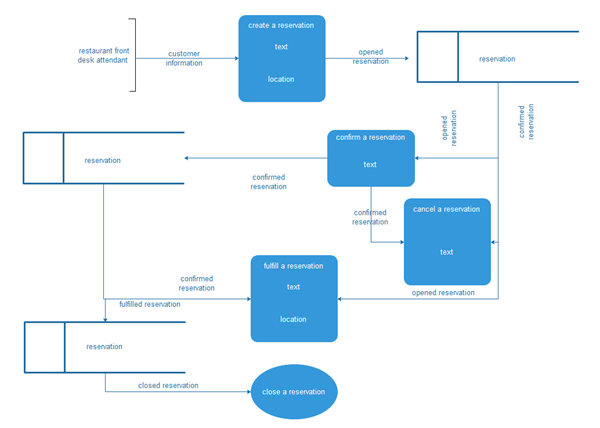 - Les processus sont représentés par un objet arrondi (un cercle, ovale ou carré aux coins arrondis). Un processus DFD peut représenter le fonctionnement du système à l'un des différents niveaux, à travers atomiques agrégat.