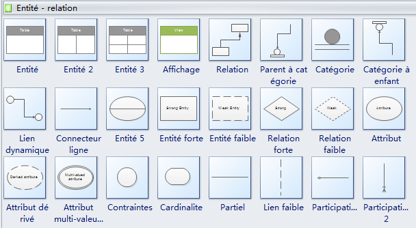 Avec un vaste ensemble d'objets de la bibliothèque tels que des entités, des liens, des articles, des attributs, des utilisateurs, des types, des légendes, des successions, des références, des frontières, des événements, des nuages, etc., Edraw est un outil parfait pour la conception de modèle de base de données et diagrammes ER.