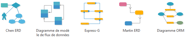 Contient des formes spéciales pour créer des diagrammes entité-relation, Chen ERD, diagrammes de modèle de base de données, Martin ERD, diagramme ORM et Express-G.