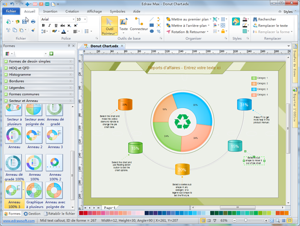 Caractéristiques supérieures du logiciel de graphique en anneau Edraw