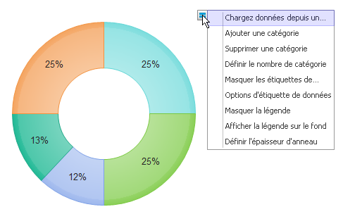 La deuxième façon de définir les données de graphique en anneau est de modifier les étiquettes de données et cliquez sur le menu flottant pour modifier son réglage. Avec l'éditeur pointer-cliquer, le graphique en anneau peut être très rapidement modifié puisque la forme changera automatiquement en fonction des données saisies.