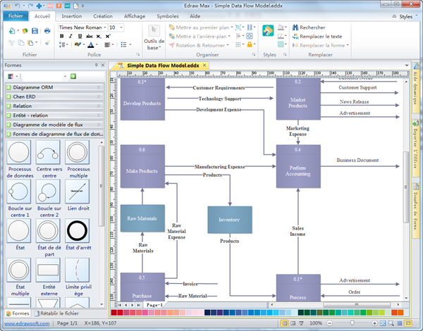 Edraw Max est un logiciel idéal pour créer un diagramme entité-relation, Chen ERD, diagramme Express-G, diagramme ORM, diagramme Martin ERD et diagramme de modèle de flux de données. Il est abordable et facile pour illustrer les diagrammes entité-relation par le glisser-déposer simple. Puis ajouter un connecteur aux formes d'entité-relation, un style ou une couleur que vous voulez. Un style de flèche supplémentaire peut être attaché au connecteur pour illustrer la relation entre les différentes entités.