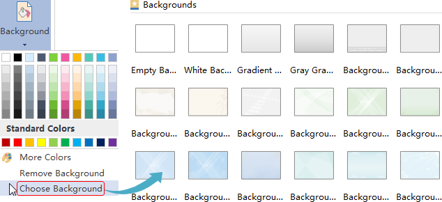 - Cliquez sur Choisir un arrière-plan pour sélectionner un arrière-plan prédéfini.