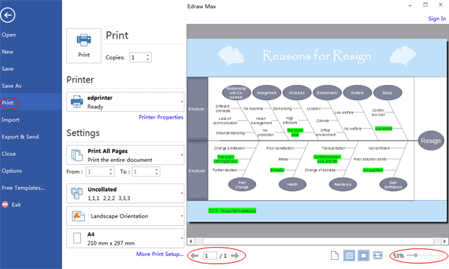 Cliquez sur Exporter et envoyer sous Fichier pour exporter le diagramme en arête de poisson. Vous pouvez choisir de le convertir en graphiques, fichiers MS, SVG, etc.