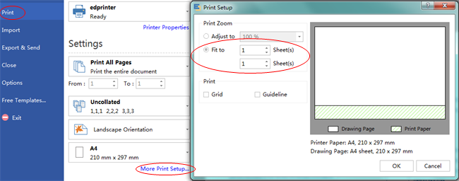 Si la page du dessin est plus grande que le papier d'impression, le dessin sera imprimé sur plus d'un papier.