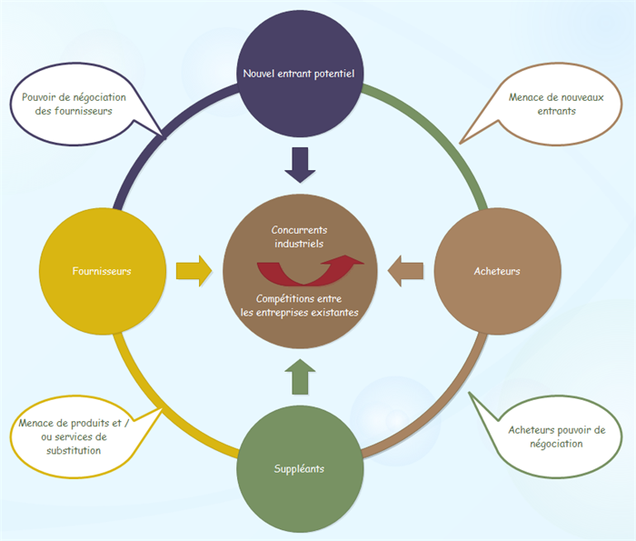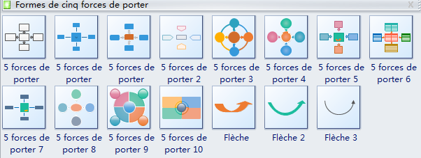 Logiciel Edraw offre un certain nombre de symboles de modèles de cinq forces prêts à l'emploi avec des styles différents de conception.